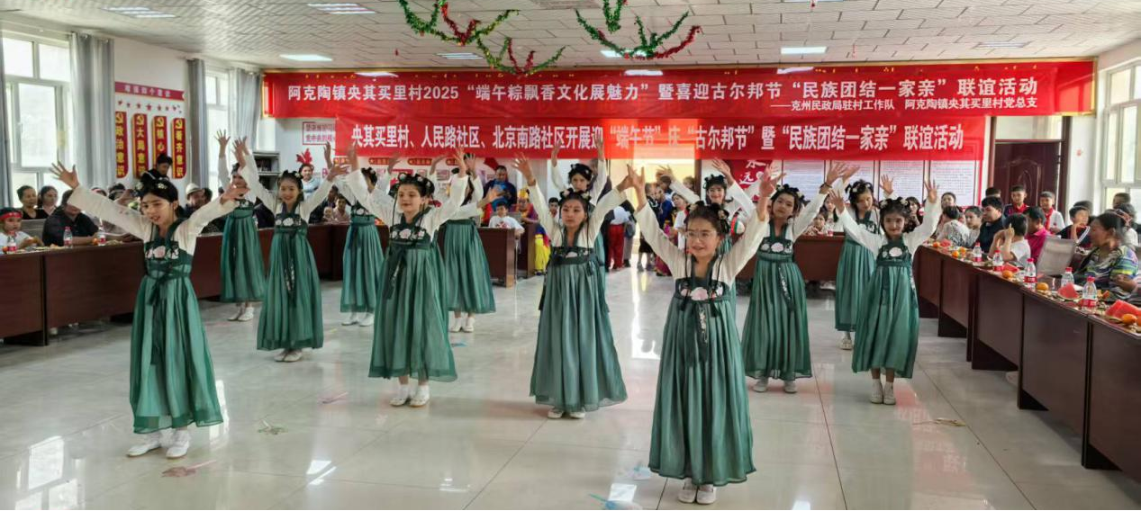 活动中,驻村工作队第一书记邓红艳同志向大家送上了端午佳节和古尔邦节的节日祝贺,详细介绍了端午节的由来及赛龙舟吃粽子的习俗,并进行了民族团结教育月相关知识竞答,让现场的各族群众和孩子们对这一传统节日有了更深入的了解。央其买里村小学的孩子们和村民们也带来了优美的舞蹈,用灵动的舞姿展现了传统文化的韵味,赢得了阵阵掌声,欢快的节奏点燃了现场浓郁的氛围。