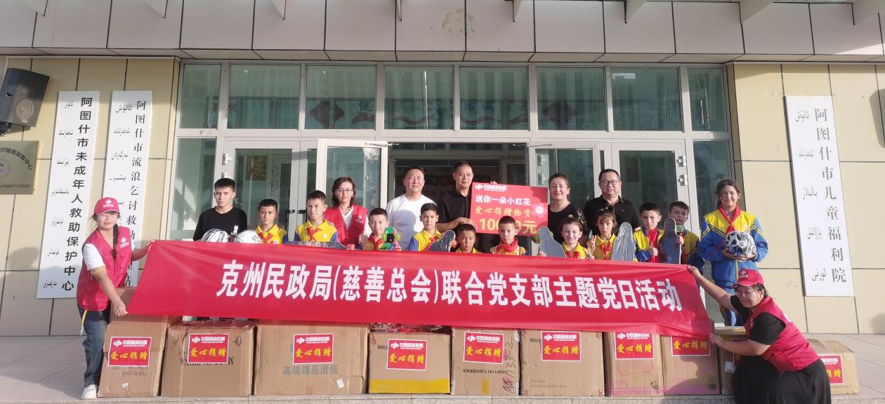 活动当日,克州民政局(慈善总会)联合党支部的党员们带着精心准备的物资抵达阿图什市儿童福利院。这些物资是通过“双色球·送你一朵小红花”活动筹集而来,包含学习用品、生活用品以及孩子们喜爱的玩具等,旨在满足孩子们日常生活和学习的需要。