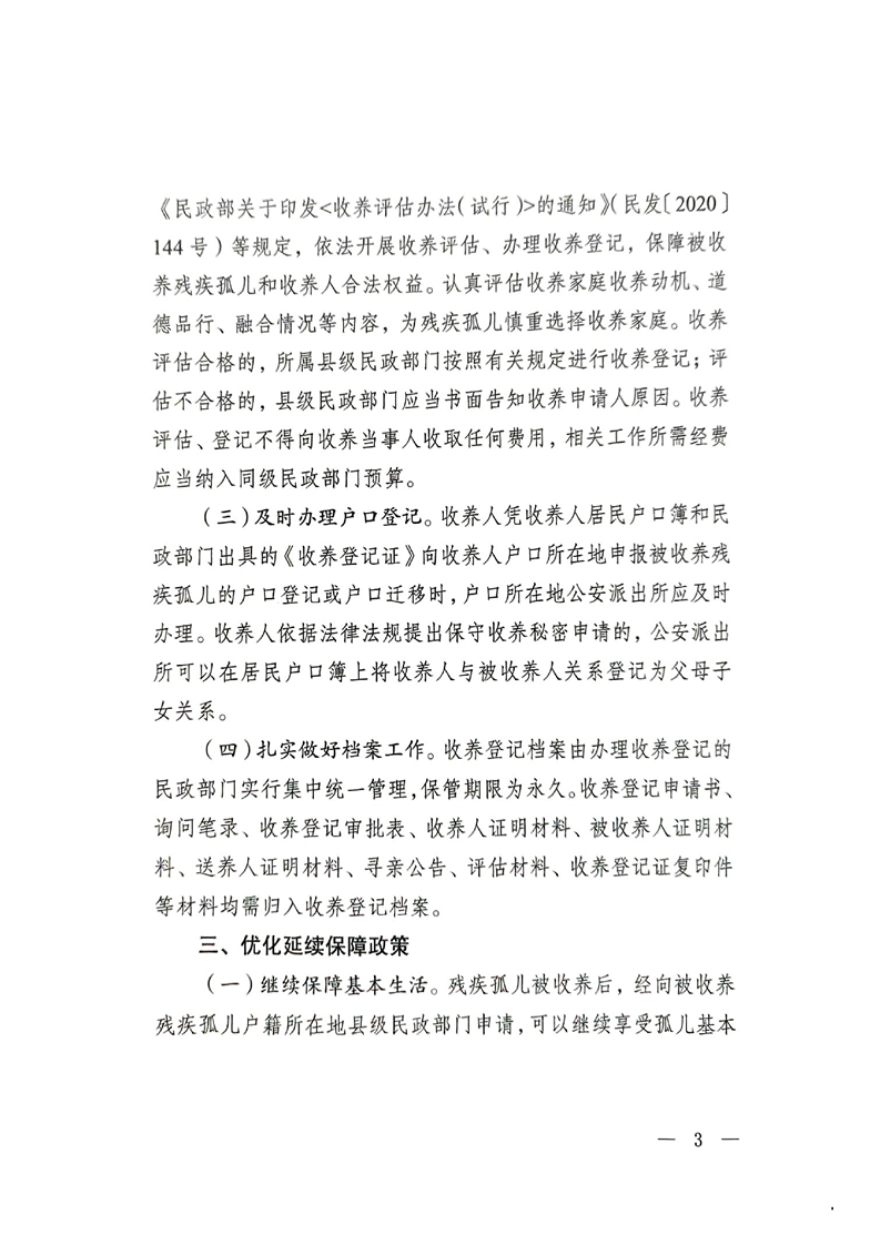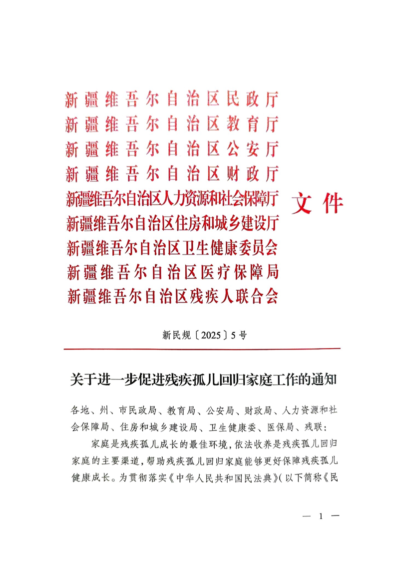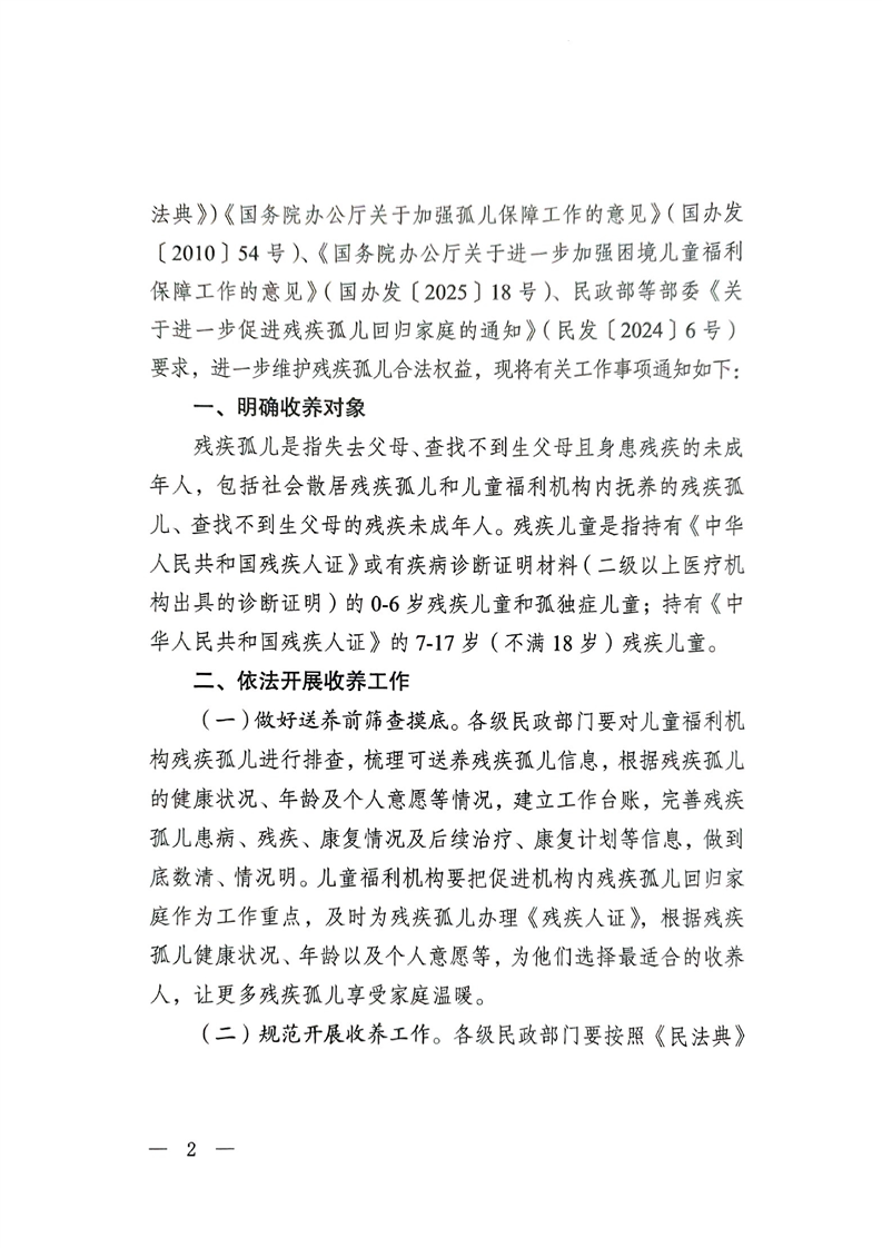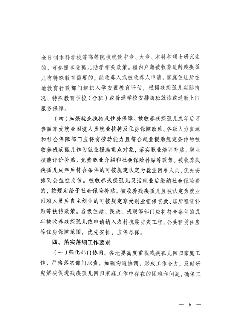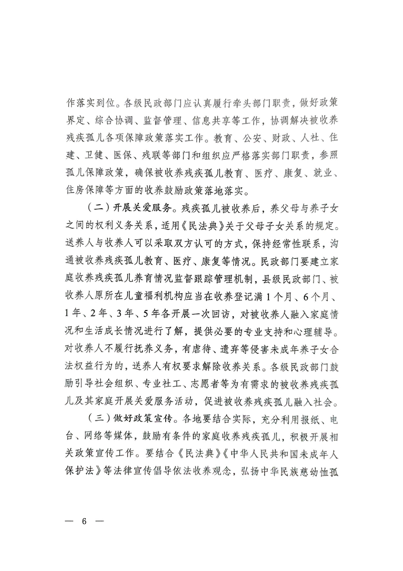 关于进一步促进残疾孤儿回归家庭工作的通知
